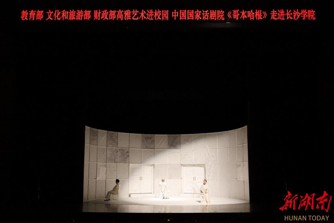 三个灵魂,反复回溯同一个场景,却始终无法得出一个确切的真相。10月16日晚,由教育部、文化和旅游部、财政部主办,湖南省教育厅、长沙学院承办的高雅艺术进校园活动在长沙学院学生活动中心大礼堂开展,近千名师生观看演出,共同欣赏这一部“科学与人文交汇的巅峰之作”——中国国家话剧院出品、演出的《哥本哈根》。