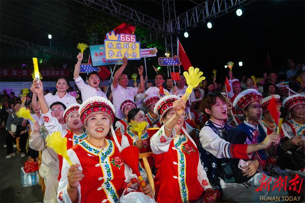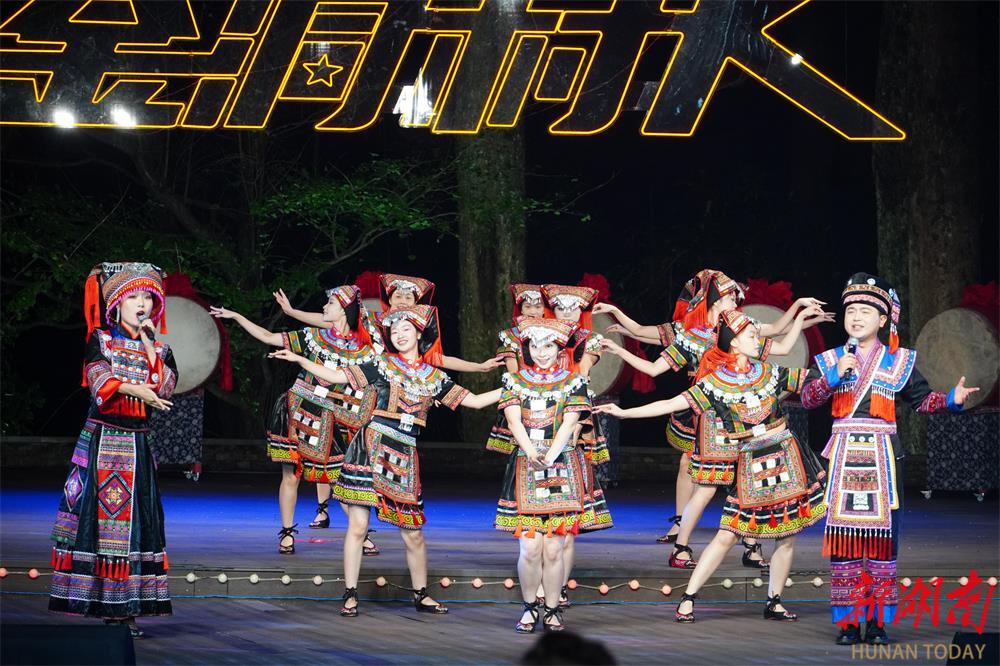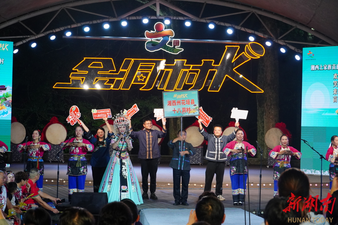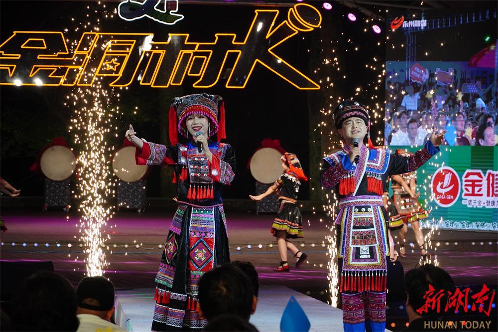 晚上7时,活动在《走,去永州》熟悉而悠长的旋律中拉开序幕。率先出场的是来自蓝山县的大桥村,他们带来了原创歌曲《振兴歌起大桥边》,礼赞勤劳奋进的家乡人民。桑植县麦地坪村的《棒棒捶在岩头上》,情景再现了白族同胞生产生活的场景。零陵区芬香村的《幸福来》,唱出芬香人民在铁姑娘精神激励下创造幸福生活的坚毅。武冈市稠树塘镇甘田村带来的《都梁兰》,将红军路上甘田村的历史文化与发展成就融入歌声,唱腔中洋溢出满满的自豪。张家界市永定区四都坪村土家族民歌联唱《胡子郎》《土家幺妹乖》《打起溜子呆配当》,柳州市三江县和里村侗族民歌《侗乡美》,展现了传统民族文化源远流长、经久不衰的魅力。浏阳市白沙村的《等待》、南岳区水濂村的《我在南岳祝福你》,赢得了观众的掌声不断。精准扶贫首倡地——花垣县十八洞村带来了压轴大戏《我的家在十八洞村》,讴歌在党的领导下,十八洞村从贫困的村到全国脱贫攻坚楷模,成为新时代红色地标的华丽转变。