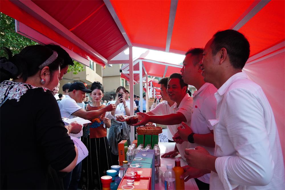 金洞村K扎根乡村,处处都体现出厚重的泥土气息,赛前“我的村庄”,用VCR展示各村的美景美貌,一帧帧美丽的画面就是我们心中故乡最美的模样。“我的特色”环节,各参赛村纷纷亮出自己“家底”“绝活”,有的展示自己纯天然的土特产,有的更是在现场制作起美食。和里村不仅带来了青钱柳养生茶、和里油茶、生态红米等柳州特产,还现场打起了油茶,做起了美味的荷花酥;白沙村化身“豆腐西施”——豆腐乳、油豆腐、豆腐干等“白沙豆腐”系列,深受食客欢迎;甘田村的武冈卤菜、铜鹅、福饼等武冈特色美食,现场烹制铜鹅玉液汤香气四溢……琳琅满目美食、土特产品引得游客纷纷掏出手机扫码,妥妥的把特产展示变成了购物潮。