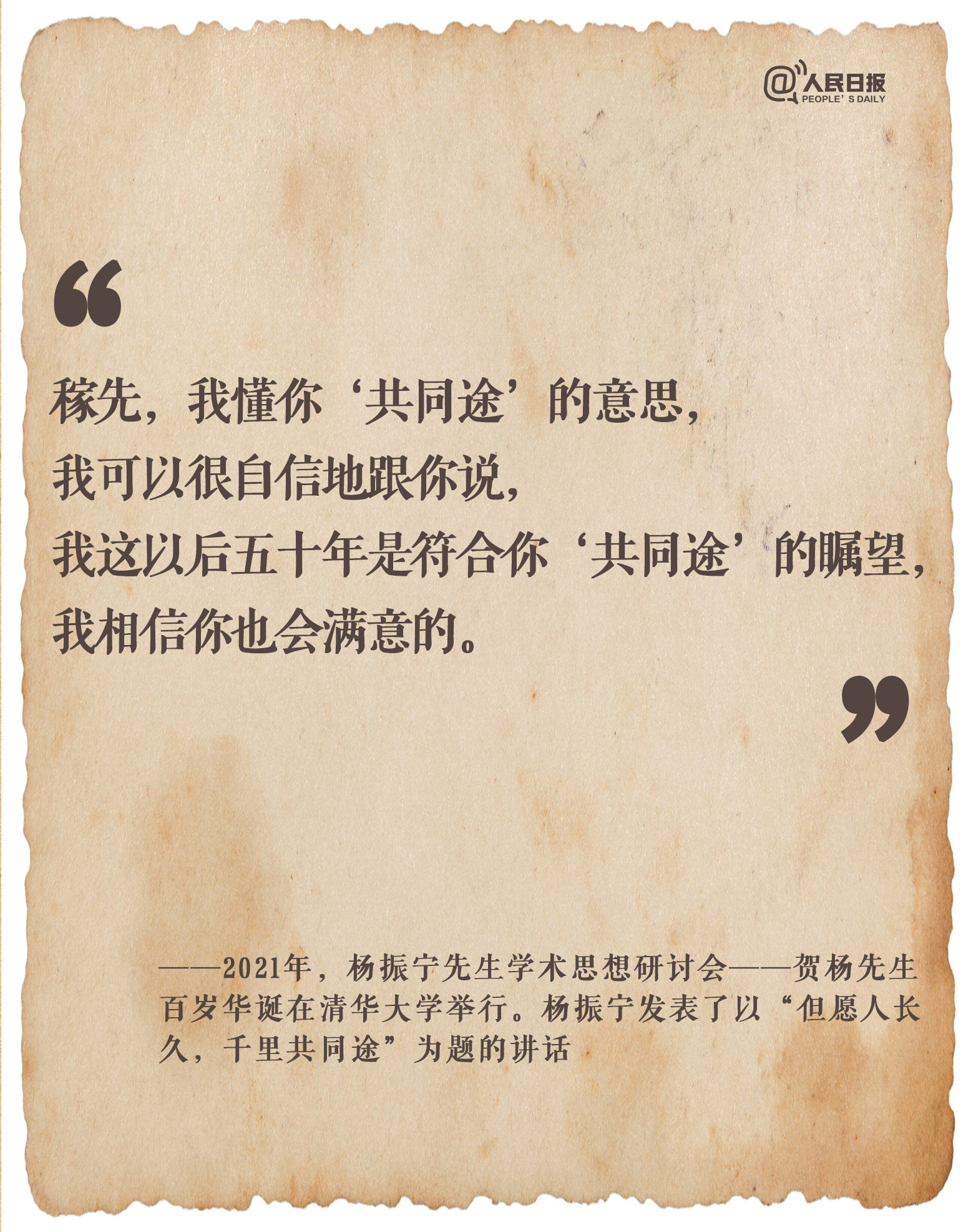 “我一生最重要的贡献,是帮助中国人克服了自己不如人的心理”“我这以后五十年是符合你‘共同途’的瞩望,我相信你也会满意的”“我已经看见天亮”……斯人已逝,心怀家国的回响永恒。