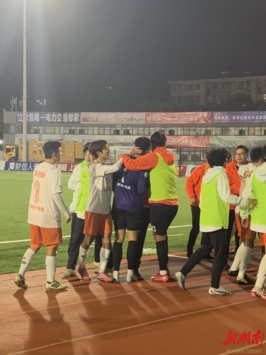 赛后,邵阳队球员们相拥庆祝。图源:新湖南记者拍摄
