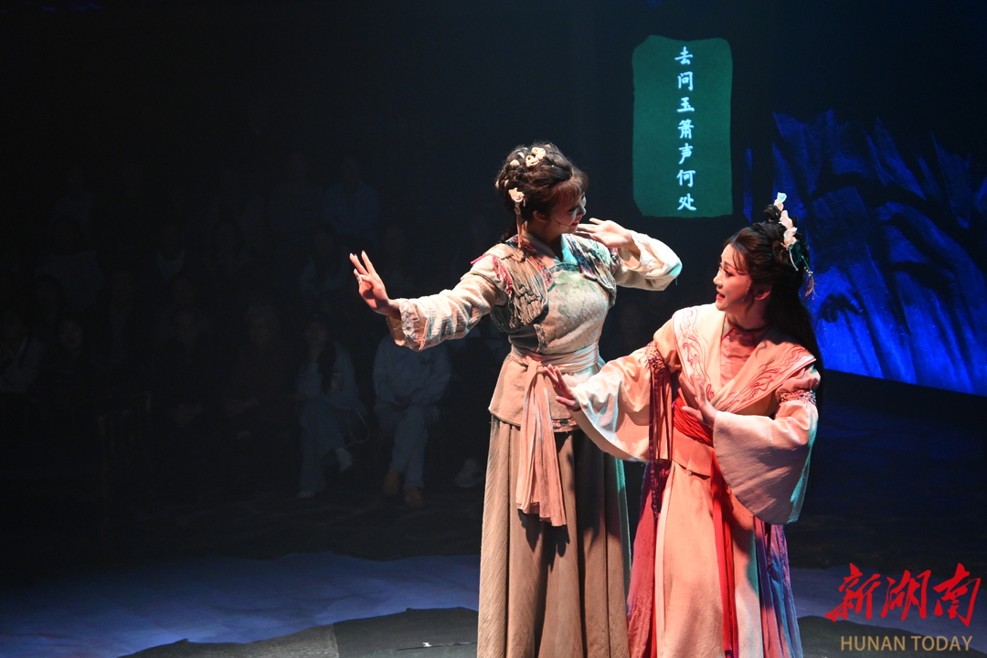 精心设计的互动环节点燃了现场:当剧中媒婆询问完“湘儿”的婚配事宜后,转而向观众席发起“招亲”;表演结束后,演员们依次返场谢幕,并邀请观众手拉手绕圈跳舞,俏皮的互动令人沉浸其中。