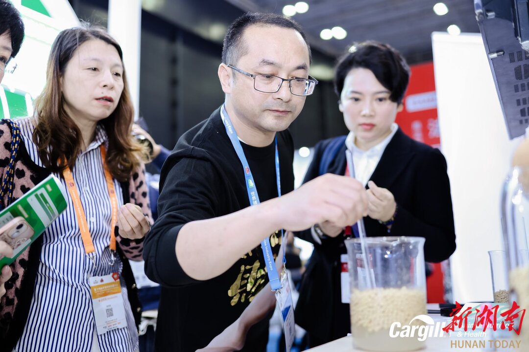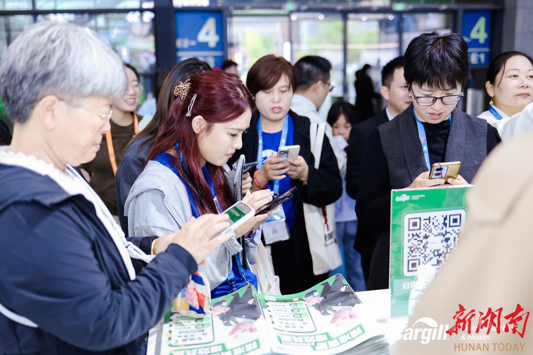 在嘉吉“同盟市集”互动区,参展观众需完成三项核心任务。一是在数字化演示区通过了解“数聚专嘉”系统,模拟“仔猪存活率统计”“饲料消耗监控”等日常工作;二是在产品体验区对比传统饲料与创新饲料海绵魔粒的区别,记录差异点;三是与展会工作人员交流“同盟召集令”,开启供应链同之旅。完成任务后可兑换的猪油拌粉,不仅是地域文化符号,更成为“深度参与互动”的激励载体 —— 据现场工作人员估算,展会第一天,该展区的参展观众均完成了打卡任务,远超传统展位“走马观花”式的参观效率。