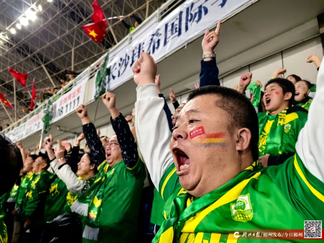 一位母亲带着年幼的儿子来观战,不仅在自己脸上涂上了油彩,还耐心地教孩子用稚嫩的声音喊着“郴州加油”;头发花白的老球迷,每次起身鼓掌的劲头丝毫不输年轻人,脸上因激动而泛着红光……这样真挚而热烈的画面,不过是郴州球迷群像中的一抹剪影。