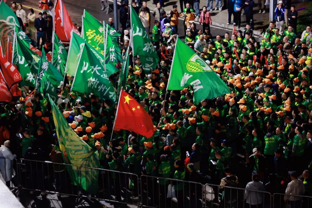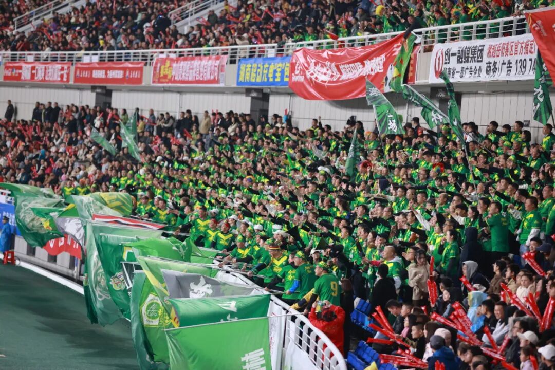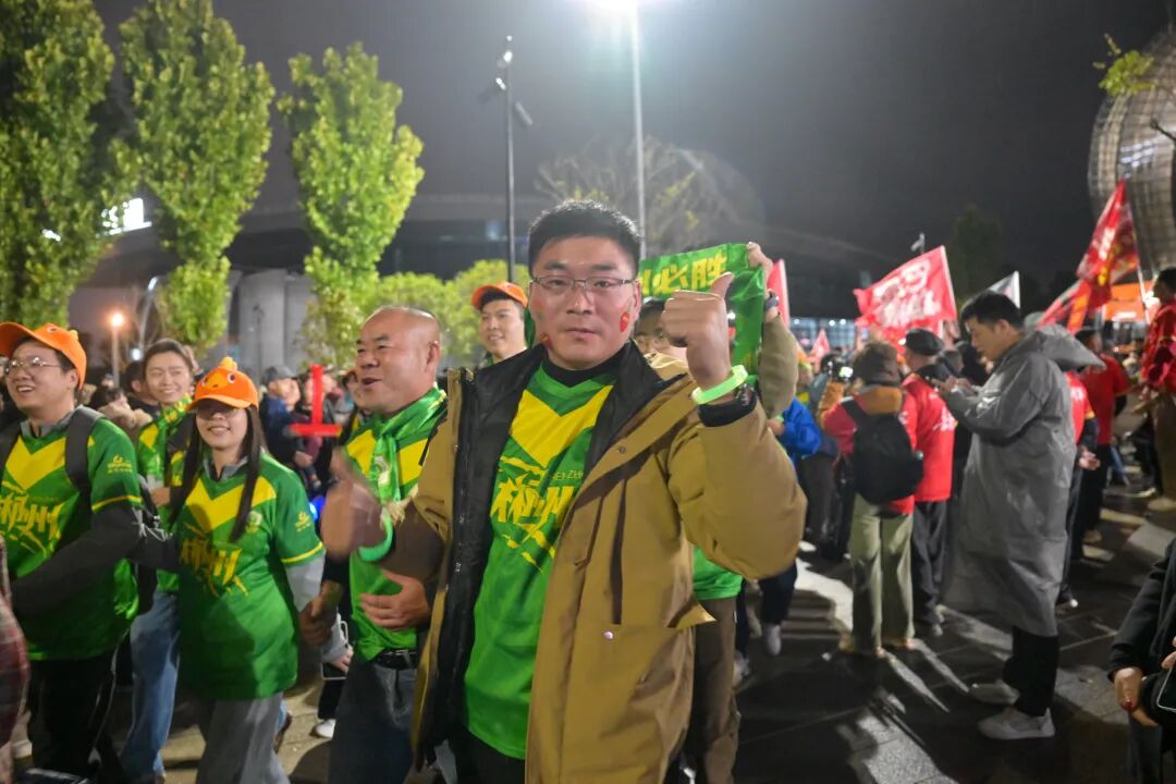 寒意随着夜色渐深,看台被凉风与细雨侵袭,但这片绿色海洋的热情丝毫未减。球迷身着单薄的助威服,在秋夜的冷风中奋力挥舞着手臂,用震天的呐喊驱散寒意。看台上,一位年轻球迷尽管冻得鼻尖发红,仍坚定地说:“这点冷算什么,能看到球员拼搏,心里就是热的!”