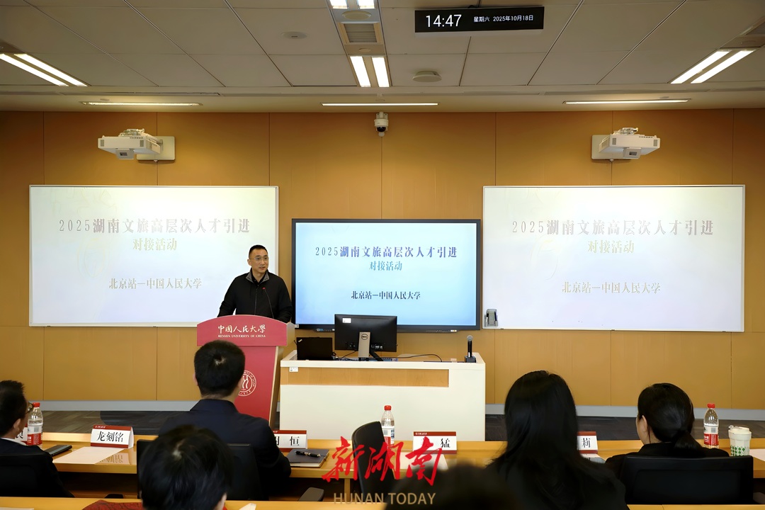 湖南日报·新湖南客户端10月21日讯(记者 龙文泱 通讯员 粟宇柔 龙刻铭 彭尔靖)为持续深化“智汇潇湘 才聚湖南”高校毕业生就业创业行动,精准引进文博领域高层次人才,10月18日至21日,湖南省文化和旅游厅工作组赴北京大学、清华大学、中国人民大学,开展高层次人才引进对接活动。