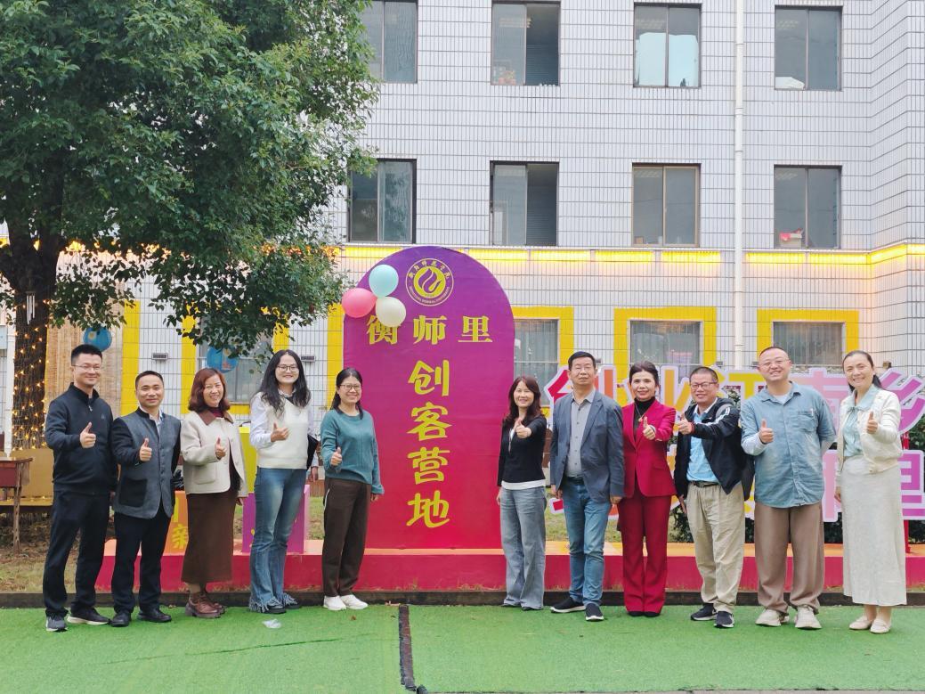 活动内场,“衡师里创客营地”项目路演正如火如荼进行。致力于非遗传承的“合香令”团队,提供沉浸式古法药香手作体验;“春芽美甲社”将美学与创业结合;“夫子曰”项目将船山文化融入产品;生科学院的昆虫文创独具一格……这些项目充分展现了文科学生独特的视角和将知识转化为产业的巨大潜力。随后。在热烈的掌声中,衡阳师范学院创新创业学院院长唐斯萍、合作发展与校友办主任陈梅香以及文学院相关领导及大学生创业导师共同为“衡师里创客营地”揭牌。