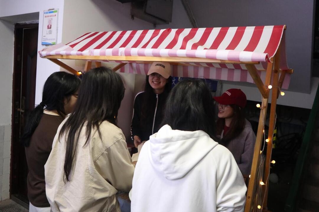 “这个'船小山'好可爱!”在“夫子曰”团队摊位前,一群学生围得水泄不通。刻着“知行相资以为用”的马克杯、绘着潇湘烟雨的古风团扇、Q版王船山钥匙扣等文创产品刚摆上桌,就被同学们争相挑选。“没想到我们的产品这么受欢迎!”团队成员彭慧一边忙着介绍产品,一边笑着感慨。活动尚未正式开始,衡师里街区的外场“创客集市”已率先升温,成为校园里最炙手可热的“打卡点”。众多优秀创业项目在此摆台设展,将抽象的创意转化为触手可及的产品与服务,吸引了大量师生驻足流连,连连称赞。