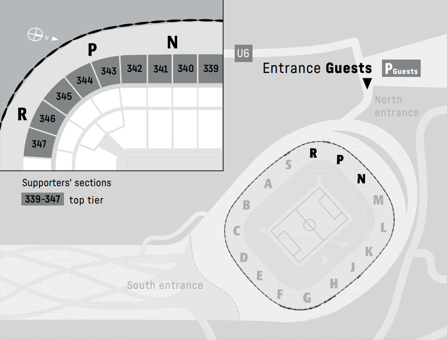 其实纵观欧洲赛场,客队球迷区基本都在球场边角,要么靠近角球旗,要么在球门后方,有些甚至还是很高层的座位,肯定不算最佳的观战位置。这可能不太“公平”,却也是合乎经济与安全等多方面考量的安排。更好的位置肯定要留给出价更高,或者说对主队更重要的观众。