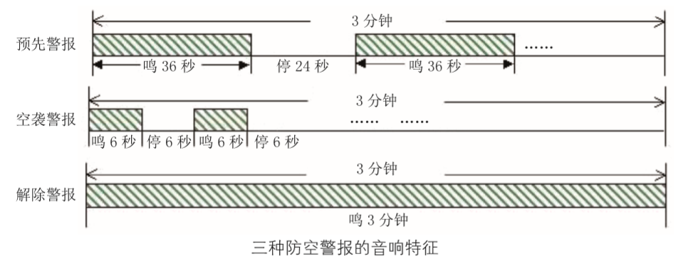 虽然预先警报、空袭警报、解除警报均长达3分钟,但音调、频率各不相同,通过学习掌握,居民完全可以判断警报的相应含义,从而采取有效的逃生手段。