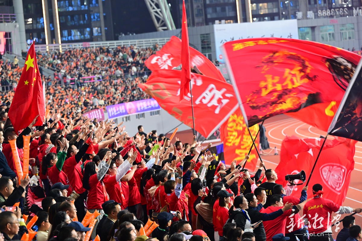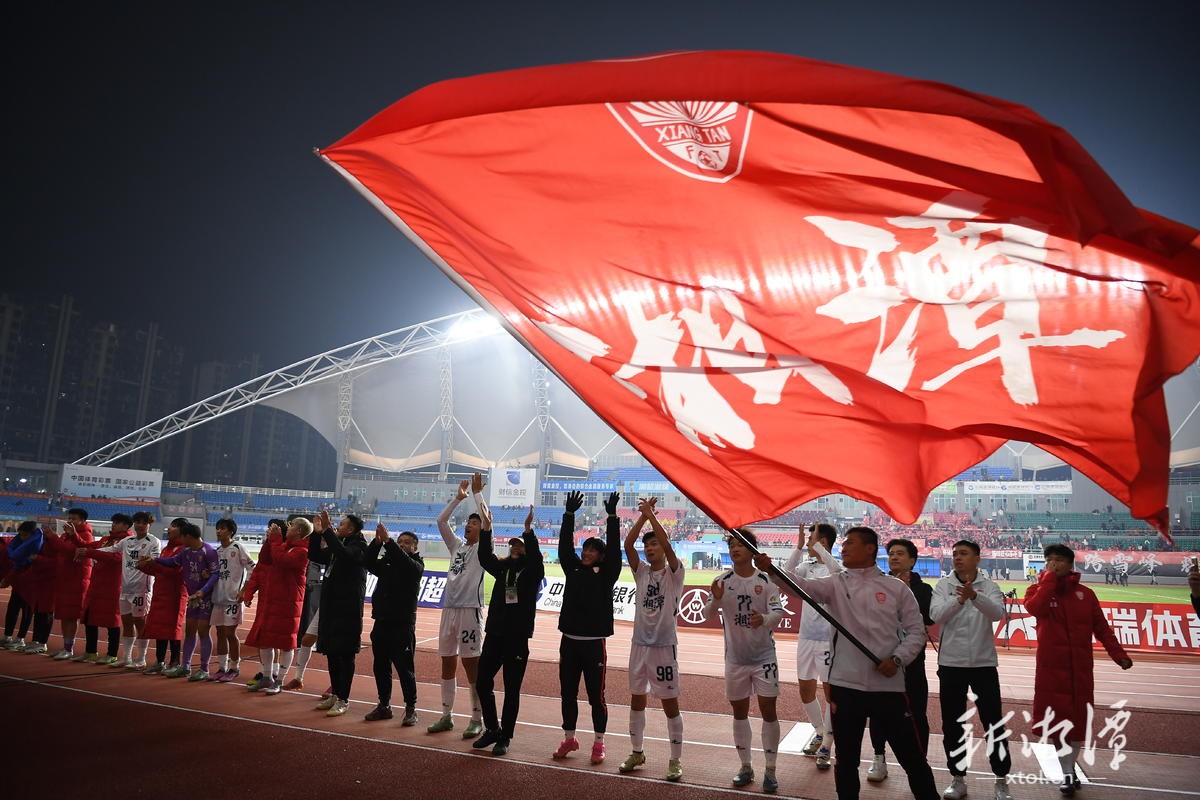 而当湘潭球员手拉手走向客队看台向球迷致谢时,胜利的喜悦在赛场上激荡。球迷们高唱《为了心中的梦想》,抱着孩子的父亲、白发苍苍的老者、嘶吼到破音的女子,所有人跟着节奏跺脚,看台座椅随之震动如战鼓,久久不愿散去。