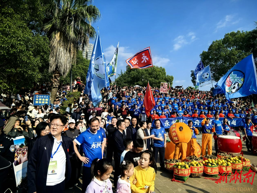 湖南日报·新湖南客户端10月28日讯(通讯员 陈洪江)潇水河畔的秋风,昨夜裹挟着道州龙船的号子与足球的呐喊,将永州染成一片沸腾的蓝。“湘超”第七轮的绿茵场上,道县百龙破浪而来,龙头昂首处,是千年竞渡的魂魄与今朝冲锋的誓言。当裁判终场哨声划破夜空,1比1的比分定格——长沙队“零失球”神话轰然崩塌,而永州“永不败”的传奇,依旧在“永冲锋”的旗帜下猎猎作响。这夜,是永州人民的“过年夜”,是热血与诗意的交响。