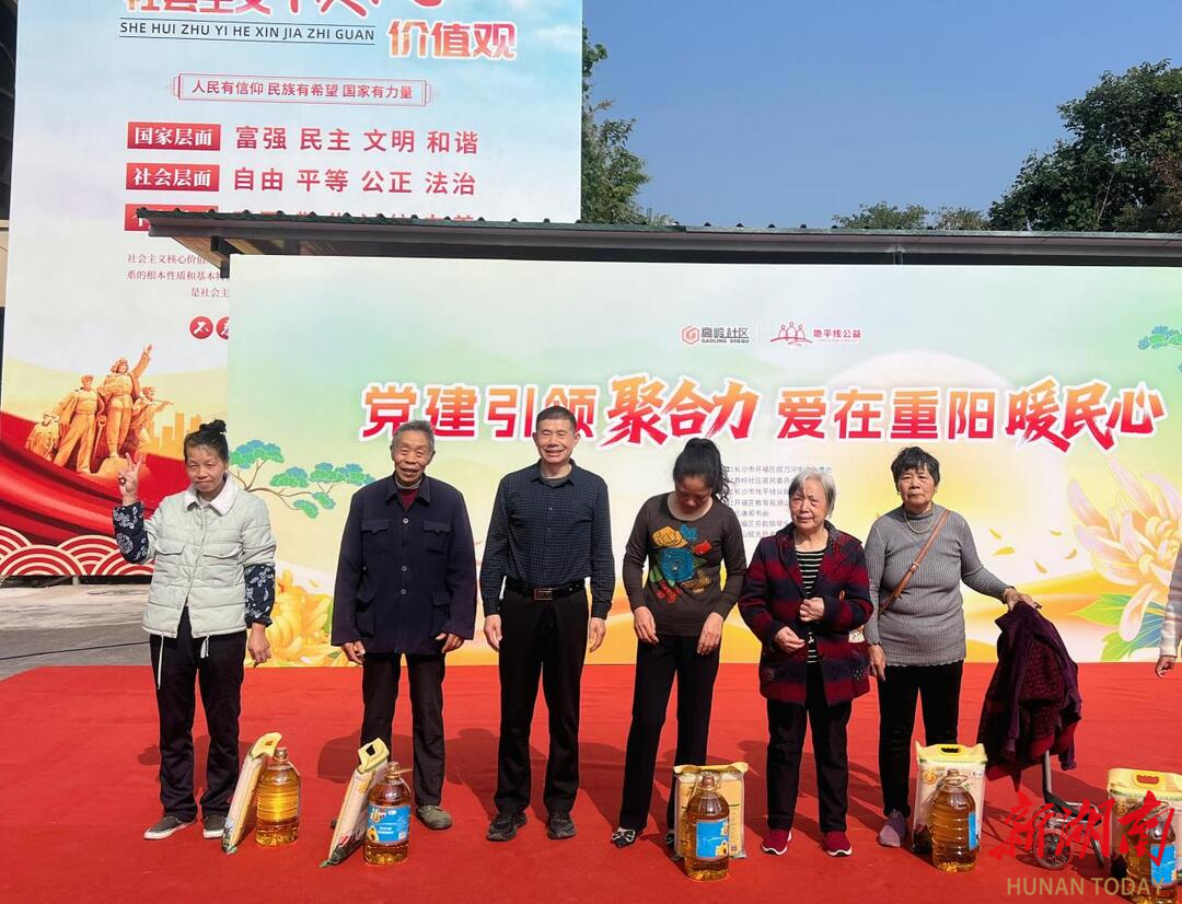 10月28日上午,长沙市开福区捞刀河街道高岭社区综合文化服务中心前坪,一场以“党建引领聚合力,爱在重阳暖民心”为主题的重阳节文艺汇演暨敬老服务活动温情上演,为社区老年居民带来一场丰富多彩的文化体验与暖心关怀。此次活动由开福区捞刀河街道办事处指导,高岭社区居民委员会主办,地平线公益承办,多家单位共同协办。