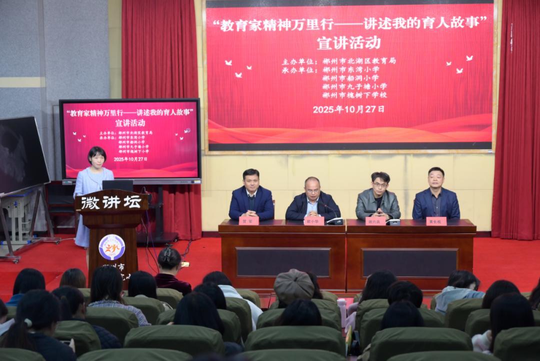 10月27日,郴州市东湾小学举办“教育家精神万里行——讲述我的育人故事”宣讲活动。郴州市九子塘小学、船洞小学、槐树下学校与东湾小学的全体教师参加。