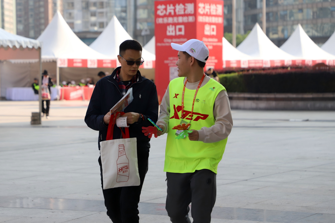 志愿者经层层选拔,组建起一支专业、热情的志愿者队伍。他们中有连续参与长沙马拉松服务的“资深志愿人”,也有初入校园、满怀热忱的新生面孔,共同以“奉献、友爱、互助、进步”的志愿精神,为赛事注入青春动能。现场,志愿者们并肩协作,将沉重的物资箱稳妥运送,汗水浸湿衣背却不停歇。分拣装备时,他们目光如炬,将号码牌、能量补给、参赛手册等物品分类打包,确保每位选手的物资包“零差错、全品类”。每一次弯腰、每一次核对,都是对赛事的郑重承诺。