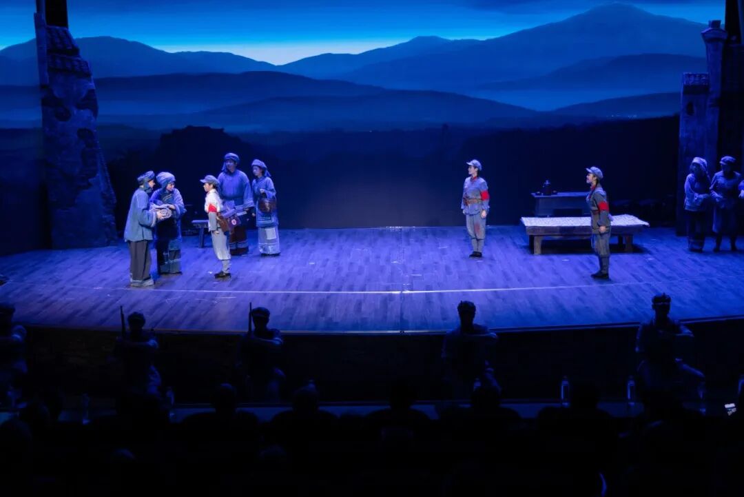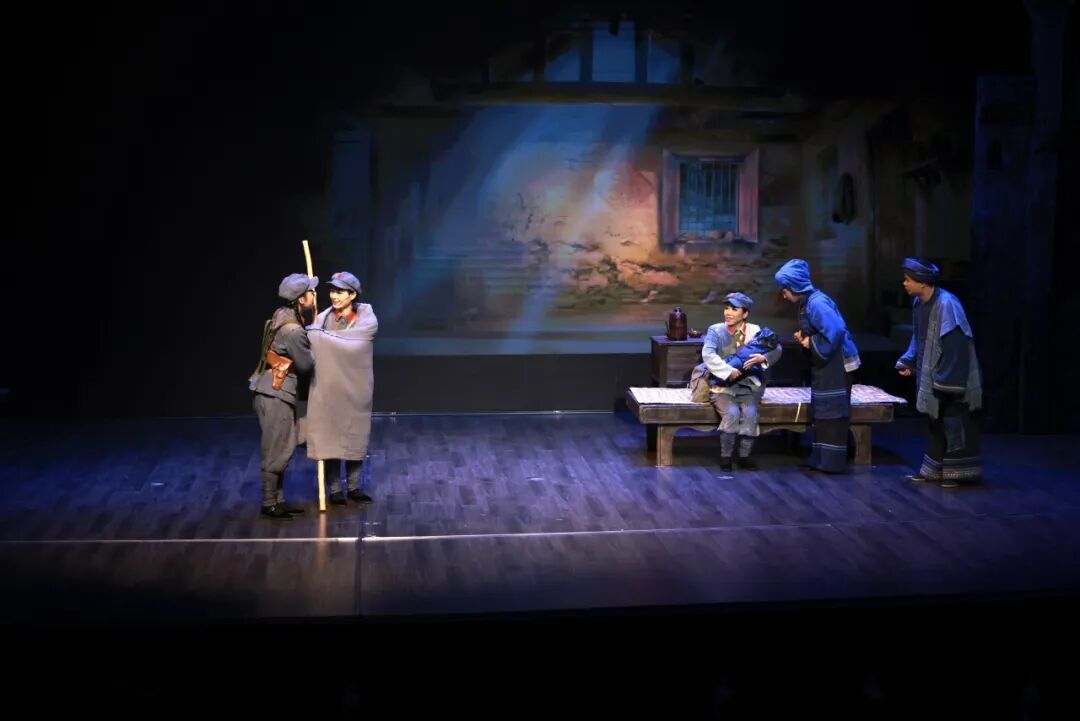 该剧由湖南艺术职业学院精心编导,汝城文工团近40名演职人员倾情出演。演出时,灯光亮起、音乐奏响,演员们深情投入地表演,让现场观众沉浸其中。来自资兴的观众刘女士深有感触地说:“当看到被子被剪开的瞬间,我情不自禁地流下了眼泪,这场演出是军民鱼水情最生动的诠释。”