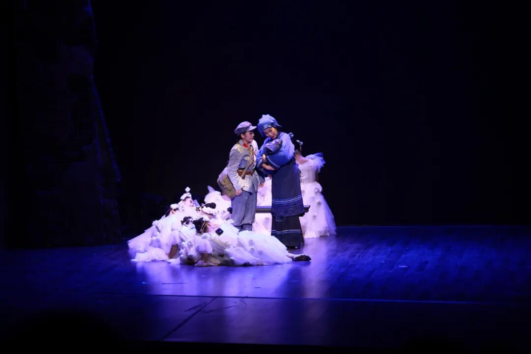 作品最具创新性的亮点,在于引入拟人化的“小棉花”作为叙事引线。这些白色精灵时歌时舞时诉,如同跳跃在红色历史画卷上的灵动音符。它们以举重若轻的方式,突破了传统革命历史题材的严肃框架,为舞台注入了强烈的诗意与青春气息,形成了独特的“青春与红色”双重调性。