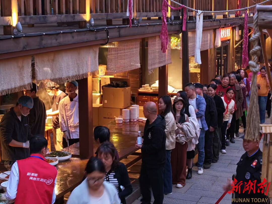 当天下午,活动延续精彩,世界长寿乡协同发展座谈会与文旅新品发布会同步举行,共商“长寿文化+生态文旅”融合新路径。夜幕降临,南岳里民俗文化美食街区依旧人潮涌动,流水席上长寿面管够,绚烂的烟花将节日的喜悦洒满寿岳的夜空。