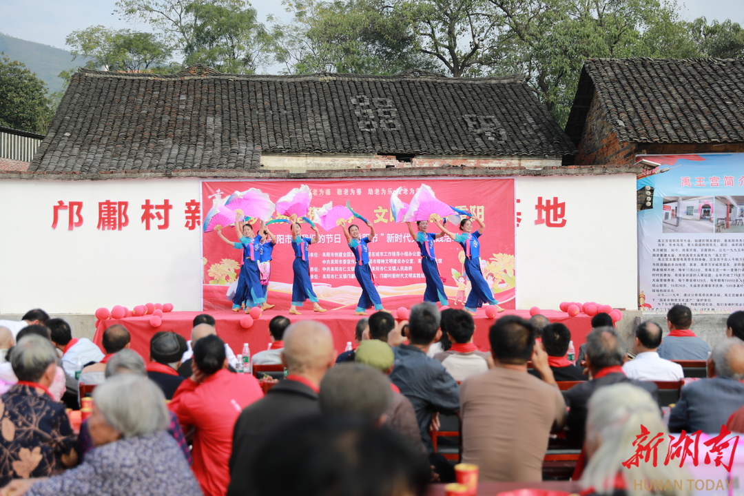 活动以“移风易俗贺福寿,文明花开映重阳”为主题,旨在弘扬中华民族尊老敬老、爱老助老的传统美德,倡导文明节俭的社会新风尚。活动现场,由耒阳市文化馆表演的节目精彩纷呈——威风鼓《精忠报国》敲响喜庆序曲,舞蹈《乡村振兴唱起来》《快乐老太》《童年老家》展现了群众昂扬向上的精神风貌,女声独唱《孝敬父母》深情悠扬,萨克斯独奏《北国之春》旋律温暖,歌舞快板《别想骗我人民币》以寓教于乐的方式普及防诈知识,闭幕舞蹈《到群众最需要的地方去》则将全场氛围推向高潮。