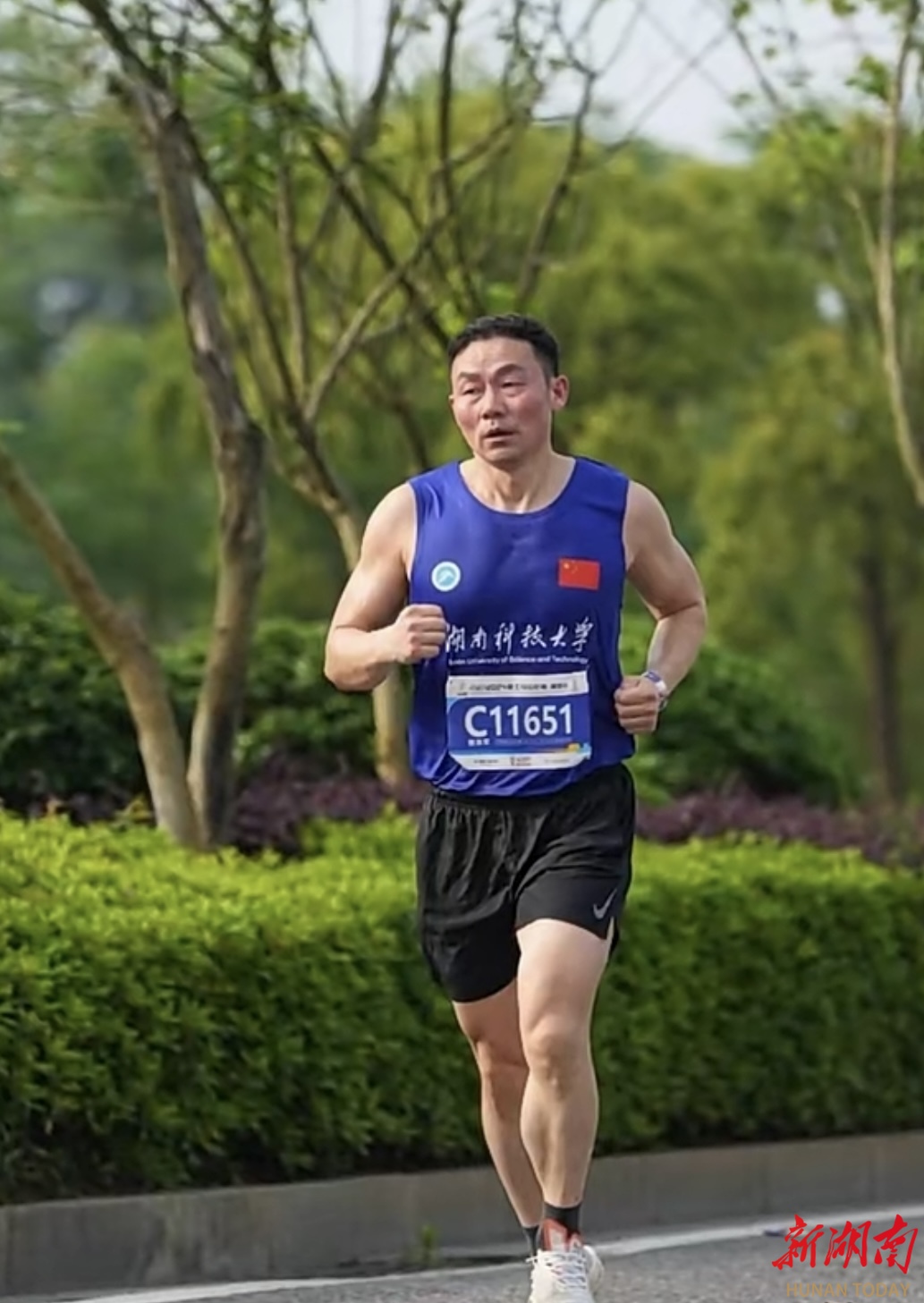 除了校内挑战,敬龙军还常带学生“走出校园”:全国高校百公里接力赛、各类马拉松赛事,都有他和学生并肩奔跑的身影。他说:“学生很渴望和老师一起练、一起赛,他们觉得要是能挑战赢我,会获得一种特别的成就感。”