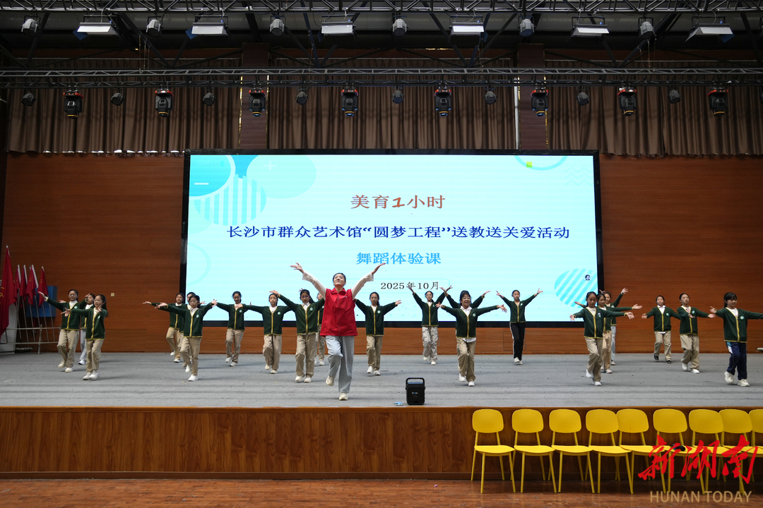 1场儿童剧、1小时非遗体验、N节艺术课,这正是长沙市群众艺术馆“1+1+N”美育实践模式,设置核心主题,深化文化感知,再通过舞蹈、声乐、曲艺、戏剧表演、美术等形式形成持续性美育体系,让乡村儿童的艺术体验从一次性观看升级为常态化浸润。