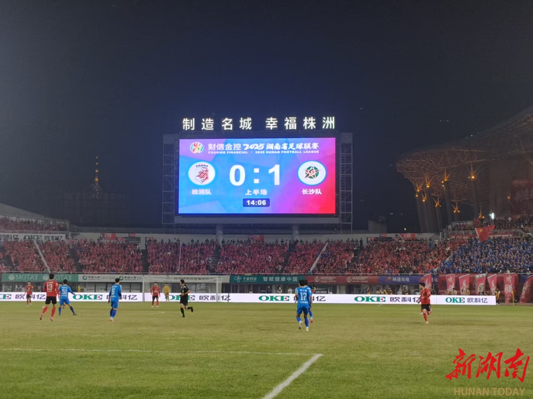 湖南日报·新湖南客户端11月1日讯(记者 张永琼 刘韵霞)今晚,湘超开赛以来最引人关注的比赛,株洲队主场迎战长沙队。开赛13分钟左右,长沙队7号刘沛林打入1球,带领球队暂时领先。