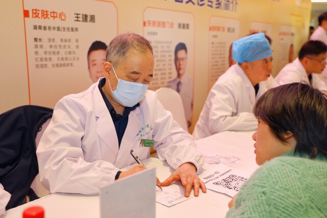专家义诊区气氛热烈,市民们排起长队。义诊团队由湖南中医药大学第二附属医院的龙铁牛、王建湘、王勇等几位湖南省名中医领衔,并集结该院治未病中心、泌尿外科、脑病一科、骨伤五科、脾胃病科、针灸推拿康复科、肛肠三科、老年病科、儿科、脊柱二科等专家坐镇,为网约车司机和附近居民提供把脉问诊、针灸、拔罐等中医特色诊疗服务和“一对一”健康咨询。