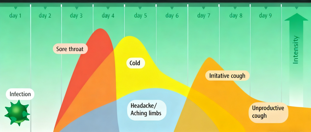 当我们感觉到不舒服,这就是免疫系统已经打响战斗了,只有当彻底打败敌人(病毒),这场战斗才会平息(症状缓解),而战斗是需要时间的,甚至,随着战斗越来越激烈,症状还有可能会先经历一个加重的过程,几天后才会逐渐减轻。