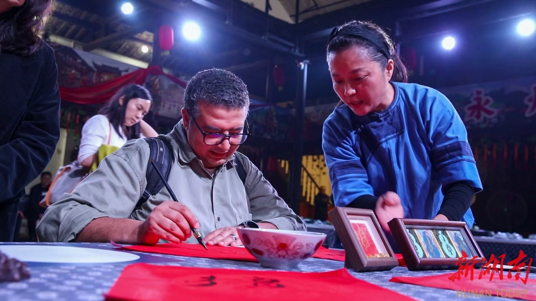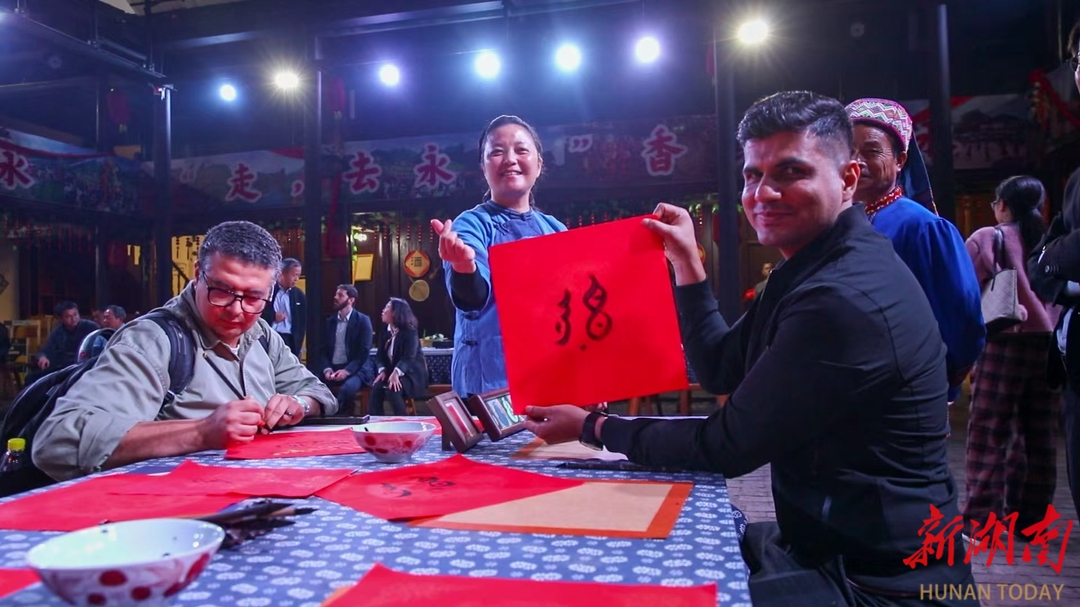10月30日,“湘智兴湘・在湘外国专家永州行”活动走进江永县,在湘外国专家们齐聚勾蓝瑶寨,零距离体验国家级非物质文化遗产代表性项目——江永女书的独特韵味,感受江永人文底蕴与发展活力。