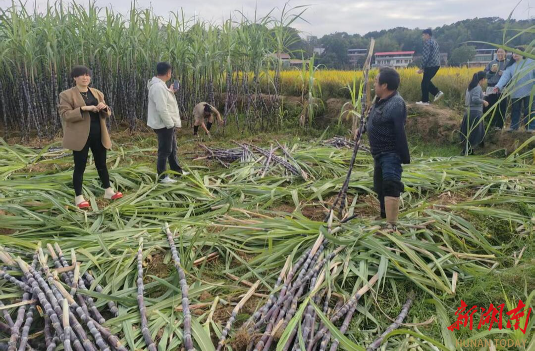 程拥军(左四)在自家甘蔗地里销售新熟甘蔗。
