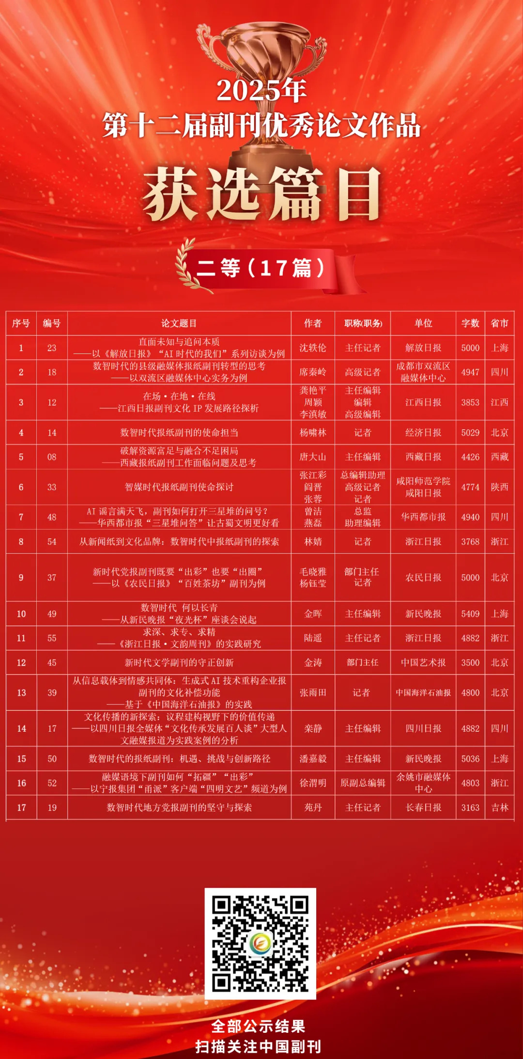 (摄影:丁以婕 代春晖)附:第十二届副刊优秀论文作品获选篇目