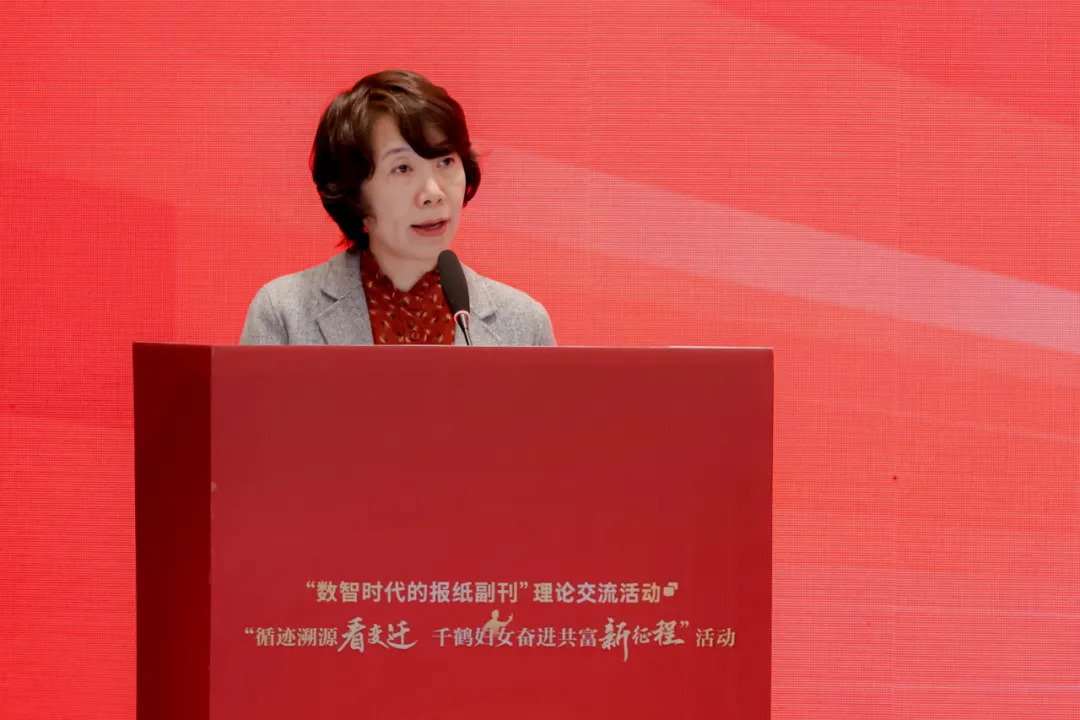 理论交流活动后,“循迹溯源看变迁 千鹤妇女奋进共富新征程”活动同步启动。启动仪式由浙江日报报业集团党委委员、副总编辑,中国报纸副刊研究会副会长张亮主持。张亮指出,在党的二十届四中全会胜利闭幕、全球妇女峰会成功落幕之际,“循迹溯源看变迁 千鹤妇女奋进共富新征程”活动的开启,具有重要的意义。中共杭州市委常委、宣传部部长黄海峰和中共建德市委副书记、市长王新锋致辞。中国妇女报社社长、中国报纸副刊研究会副会长孙钱斌讲话,鼓励副刊同仁把理论交流的思想火花融入到这次的实践,深入挖掘千鹤妇女精神的历史契机、时代内涵与当代启示,生动讲述千鹤妇女的历史故事和当代传人故事。活动期间,中国报纸副刊研究会的会员们走访千鹤村、梅城古镇创业街、更化合作共富创意园、“千万工程”起源地梅林村等地,深入感受新时代“千鹤妇女精神”的蓬勃生命力,记录城乡一体融合高质量发展的美好新图景。