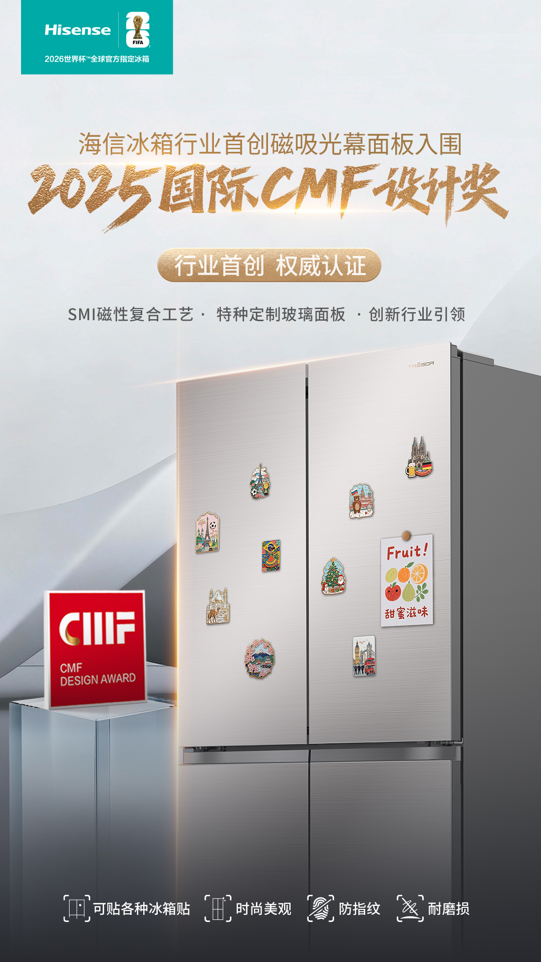 日前,家电行业迎来一项标志性创新——深耕市场多年的海信冰箱正式推出了全球首创的磁吸光幕门板,并成功入围2025国际CMF设计奖。这一突破性技术不仅解决了玻璃门板冰箱长期存在的“美观却无法吸附”的用户痛点。该技术通过在特种玻璃内层采用独家的磁性介质复合技术,在不影响门板美观度、平整度和隔热性能的前提下,赋予整面玻璃强大的磁性吸附能力,确保冰箱贴、多功能磁吸收纳架等磁吸配件“强吸附,稳固定”。同时,此次推出的磁吸光幕门板,提供多种纹理外观选择,不仅提升产品的视觉层次感与家居适配度,更具备抗菌、高硬度、防指纹、易清洁等实用属性。