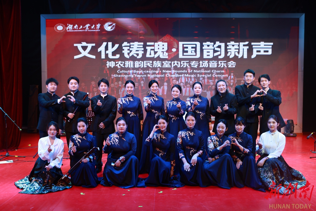 湖南日报·新湖南客户端11月4日讯(通讯员 刘映瑛 记者 刘韵霞)11月3日晚,“文化铸魂·国韵新声”品牌音乐会暨湖南工业大学神农雅韵民族室内乐团首次专场音乐会在湖南工业大学音乐与舞蹈学院音乐厅举行。音乐会由湖南工业大学音乐与舞蹈学院主办、株洲市音乐家协会协办,神农雅韵民族室内乐团倾情呈现,集中展示了民族音乐的经典魅力与当代活力,以青春之声传递国韵新声,为现场观众带来一场跨越时空的国乐盛宴。