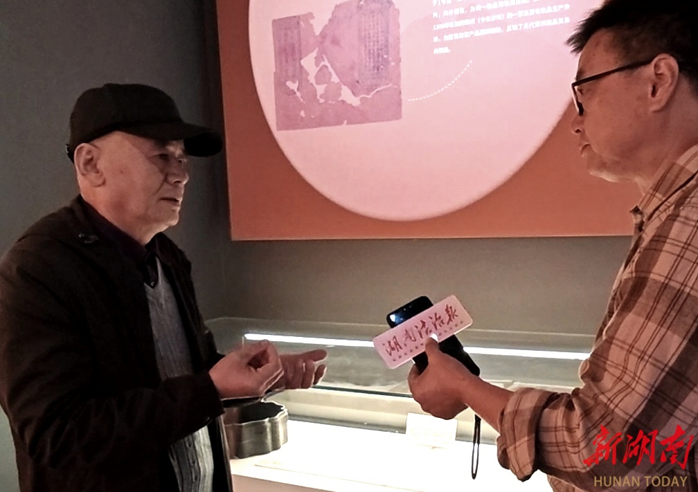 湖南文博智库专家、沅陵县博物馆原馆长陈勇(左)接受湖南法治报记者采访。