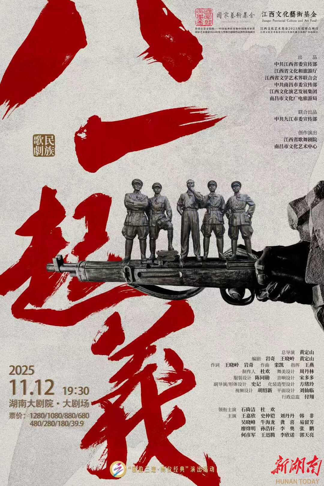 湖南日报·新湖南客户端11月4日讯(记者 胡雪怡)11月4日,记者获悉,“雅韵三湘·舞台经典”歌剧《八一起义》将于11月12日晚在湖南大剧院上演。