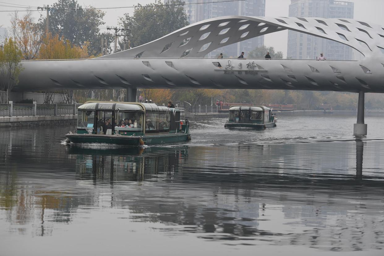 11月5日上午,坝河15公里游船航线开启试航。明年,游客有望乘船去往城市副中心,这也是北京首条贯通中心城区与城市副中心的旅游航线。