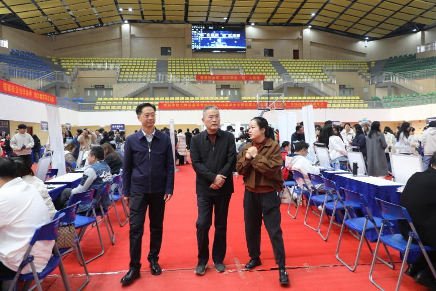 湖南日报·新湖南客户端11月6日讯(通讯员 尹羚又 谢源 李湘兰)11月5日上午,湘中幼儿师范高等专科学校在体育馆举办2026届毕业生大型供需见面会暨“校友回湘”专场招聘会。来自全国各地近100家优质企业到场招聘,为2979名应届毕业生提供涵盖教育、科技、文化、服务、制造等多个行业且丰富多样的就业岗位。学校党委书记夏宇宏,学校党委副书记、校长王玉林出席活动现场。在校领导陈湘清、米锋、许名奇、龚跃辉现场指导,各部门、各学院相关负责人及3000余名学生参加。