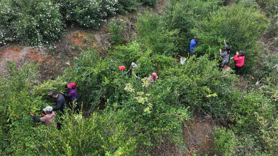 走进蔡桥乡水口村油茶种植基地,饱满的油茶果、洁白的油茶花,挂满油茶树,压弯了枝条。茶果变红,茶花盛开,该村油茶今年又迎丰产。基地里,邵阳县怡悦油茶专业合作社负责人周根生正组织村民们忙着采摘油茶果,大家三五成群,或踮脚采摘,或弯腰装袋,或肩扛转运,油茶林间一派繁忙的丰收景象。村民吕美苏曾种植1亩油茶,一亩地仅能收获300~400斤鲜果,经济效益大打折扣。如今她以土地入股加入了该合作社,油茶树全权由合作社管护,每年产出的油茶果按照“四六”分成,她拿四成,合作社拿六成,油茶采摘时在油茶基地务工,每天还能挣到80元的工资。“我们没有枝术,一亩田摘400~500斤,这里周老板有枝术,一亩田摘2000多斤,还是要有枝术,没枝术还是不行的。”蔡桥乡水口村村民吕美苏边摘油茶果边说道。