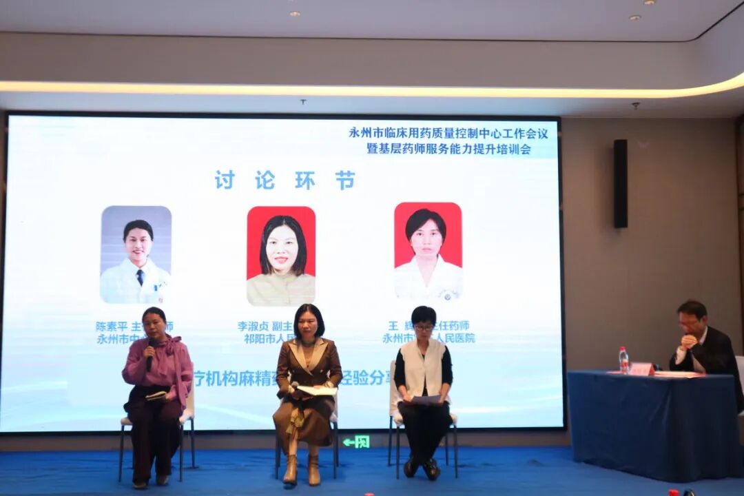 会议设置专题研讨环节,围绕“AI赋能如何破解基层药学服务瓶颈”“麻精药品全流程管理实践”两大核心议题,南华大学附属第二医院李荣主任药师、蓝山县中心医院陈艳副主任药师、江永县人民医院何贞忠副主任药师、永州市中心医院陈素平主任药师、祁阳市人民医院李淑贞副主任药师、永州市第三人民医院王辉副主任药师等药学专家展开深度对话,实现政策传导、技术指导与实践经验的双向赋能,有效促进学术成果向基层转化。
