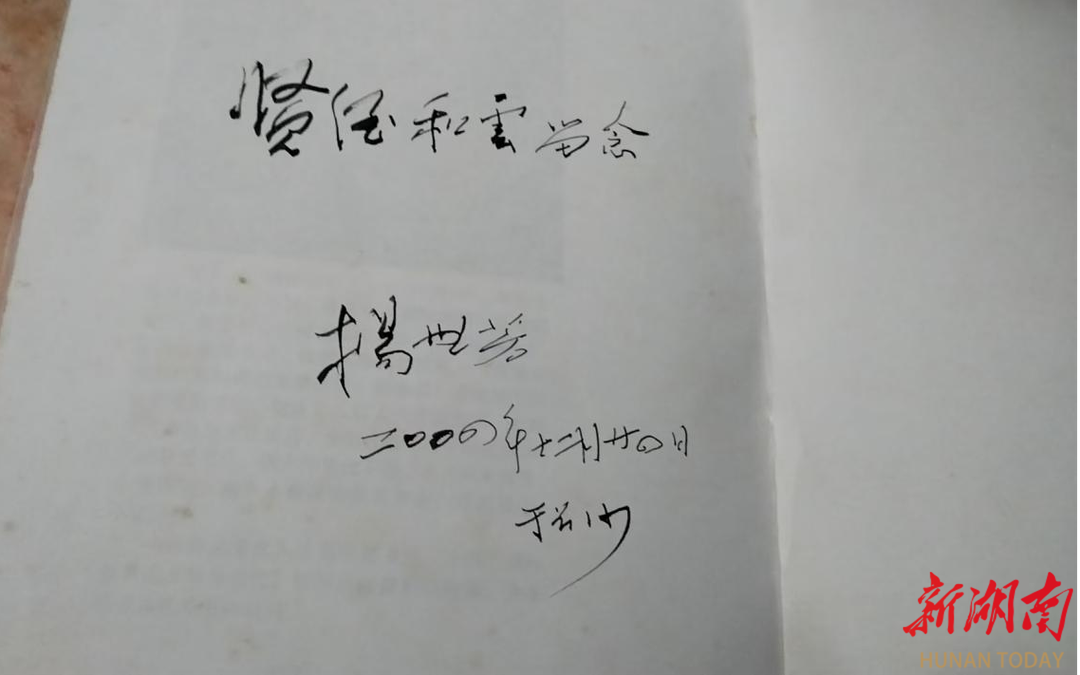 四十多年来,我怀着感恩之心,一直与杨总编家来往密切,尤其2004年,杨总编病重,我和妻子冒着风雪前往湘雅附二医院探望,医生规定只能二十分钟交谈,但他要医生多加15分钟,他总结人生真理,为人要正直,厚德载物,两袖清风……最后含着泪花深情地说:“刘乃叽崽,几十年来,似乎成了我家亲人,我没有什么留给你,只送一本书法集子给你啊!”他留着泪水写下“贤侄和云,赠送人:杨世芳,2004年12月12日”。像是父子俩拥抱着。我捧着杨总书法集,泪水不停地滴在这本宝书上,依依不舍离开病房。虽然他已经离世多年,但那封亲笔信,我至今珍藏在家中最安全的地方。每当夜深人静时,我总会小心翼翼地取出它。纸页已经泛黄发脆,字迹也开始模糊,但那份温暖依然能穿透时光,照亮我的心房:“刘锐你好!你的作品已阅读,你向我报投稿近百余篇,精神可嘉,难能可贵,写作水平不断提高,走自学成才之路,这是很正确的,我会积极鼓励和支持你,祝大器早成!并欢迎你继续投稿,来报社做客。杨世芳”
