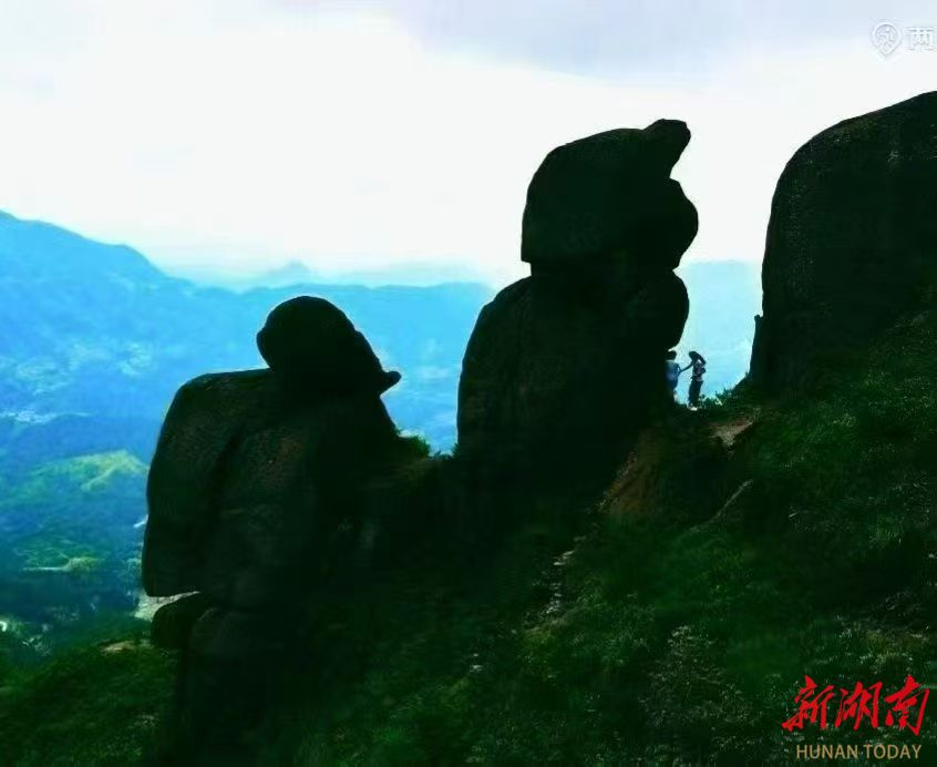 视线微转,紫顶山的轮廓在云雾之间若隐若现。此山素有“湘南武功山”与“南国富士山”之誉,山顶是广袤的高山草原,其上巨石星罗棋布,姿态万千。风起之时,云海自深谷间蒸腾而上,转瞬淹没了连绵山峦,光与影在其中追逐流转变幻,空气通透得不染一尘。放眼望去,瑰丽奇幻,令人恍如踏入仙境。