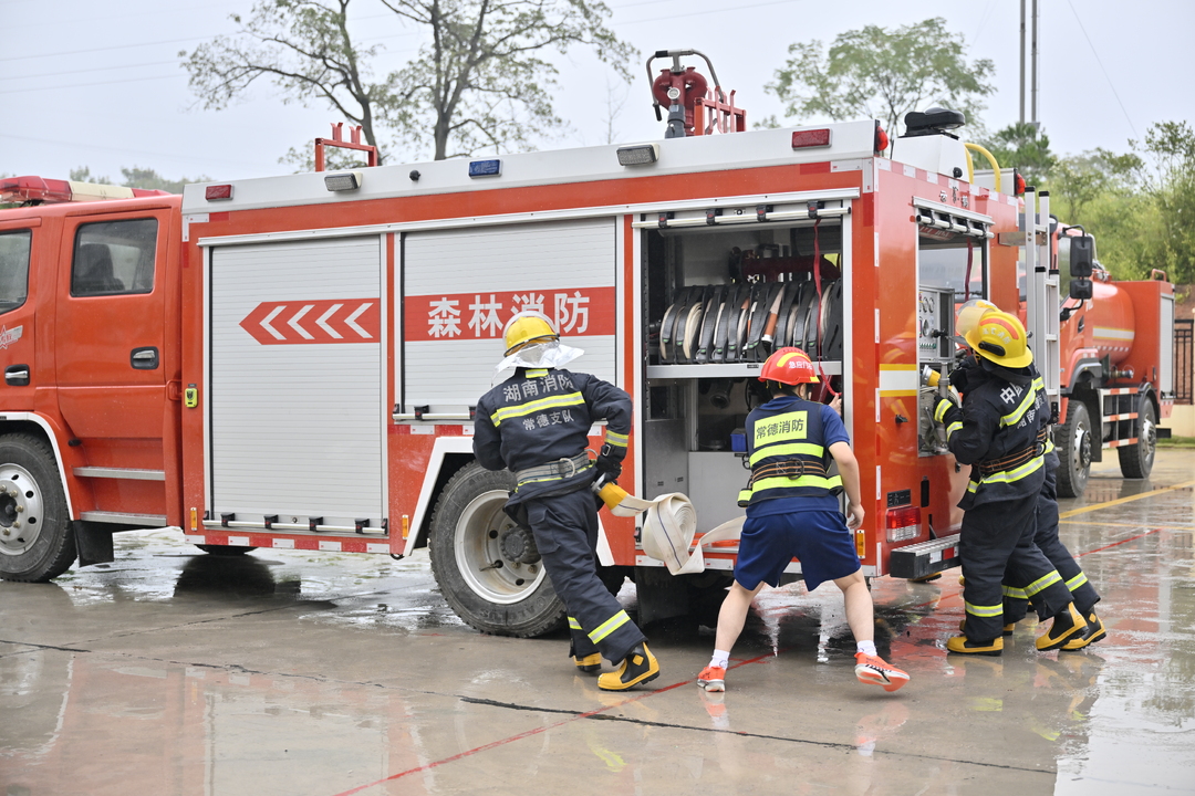 (水罐消防车一车两枪操。 周嘉晨摄)