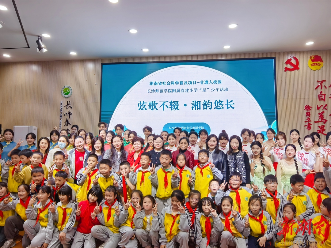 湖南日报·新湖南客户端11月7日讯(记者 王晗 通讯员 旷星)非遗弦歌进校园,千年湘韵润童心。11月6日,“弦歌不辍 湘韵悠长”湖南丝弦非遗展演在长沙师范学院附属春建小学热力开演,这场集视听美感与文化内涵于一体的艺术盛宴,让国家级非物质文化遗产的独特魅力浸润着每一位师生的心灵,为校园注入浓郁的湖湘文化气息。