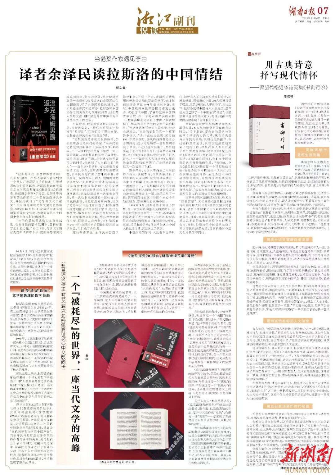 译林出版社已经出版的《撒旦探戈》《温克海姆男爵返乡》,以及即将出版的《赫尔施特07769》,都由著名匈牙利语翻译家余泽民翻译。余泽民是旅匈作家,文学翻译,北京第二外国语学院欧洲学院特聘教授,被誉为“当代匈牙利文学的中国声音”。而余泽民与拉斯洛也并非单纯的作者与译者的关系,更是相识三十余年的朋友。在翻译的过程中,余泽民与作者进行了沟通与交流,并基于匈牙利语及汉语的特点、读者的阅读适应性等考量对作品进行细致的翻译,精巧地呈现了原作的风格。