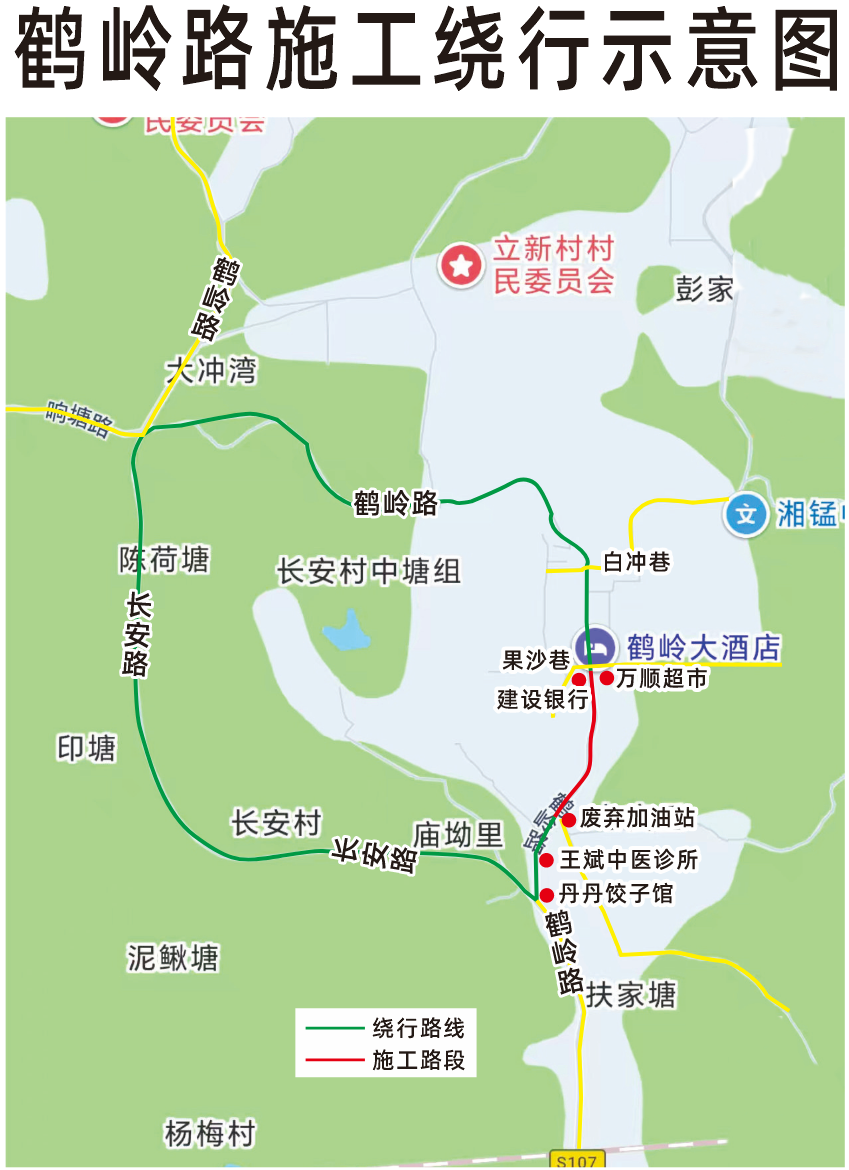 因雨湖区姜畲、长城、鹤岭片区污水管网建设项目(一期)鹤岭片区建设的需要,建设单位湖南省沙坪建设有限公司申请对雨湖区鹤岭路部分路段全封闭占道施工。根据《中华人民共和国道路交通安全法》和《中华人民共和国道路交通安全法实施条例》的有关规定,湘潭市公安局交通警察支队决定于2025年11月12日至2026年1月12日对上述路段实施交通管制,管制期间除施工车辆外,禁止其他一切车辆通行。