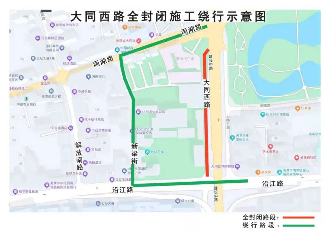 因湘潭市河西污水处理厂市政雨污分流改造工程建设的需要,建设单位湘潭市政科技集团有限公司申请对雨湖区大同西路(雨湖路—沿江路段)全封闭占道施工。根据《中华人民共和国道路交通安全法》和《中华人民共和国道路交通安全法实施条例》的有关规定,湘潭市公安局交通警察支队决定于2025年11月12日至2026年1月12日对上述路段实施交通管制,管制期间除施工车辆和人员外,禁止其他一切车辆和行人通行。
