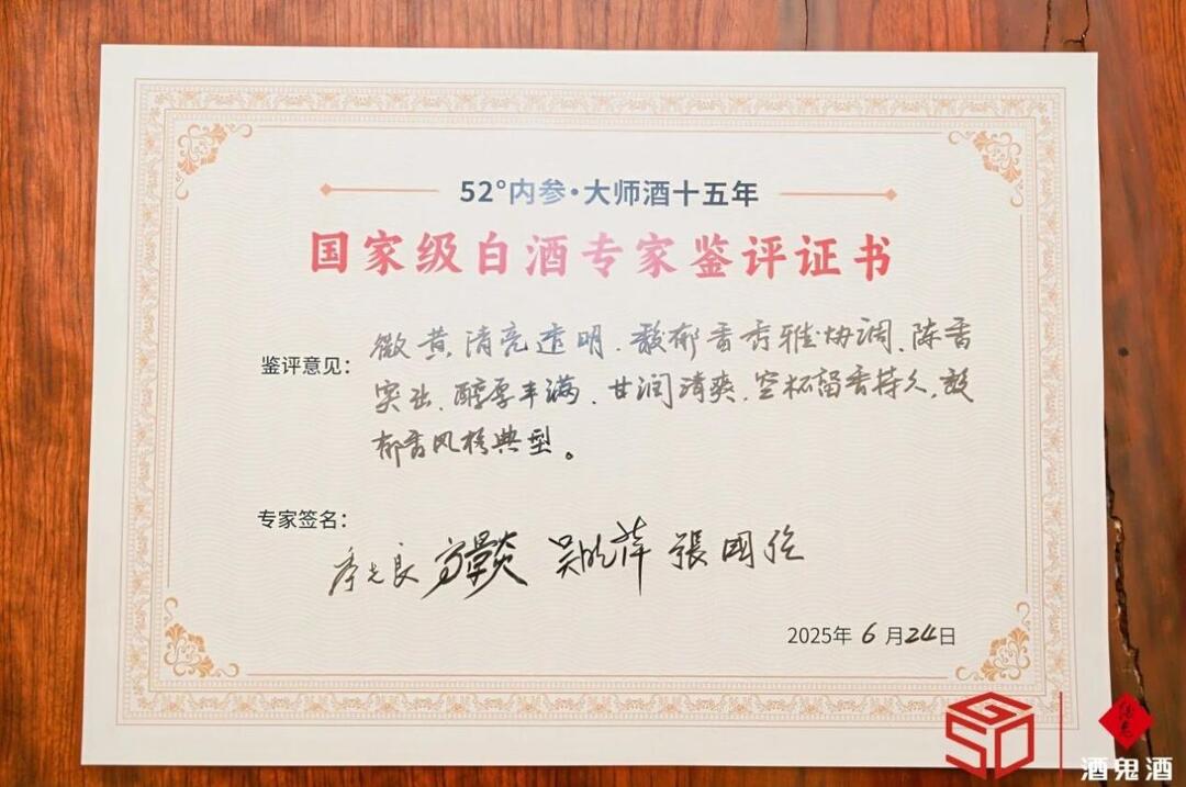 圈层营销的持久生命力,源于产品本身的硬核品质。作为中国酒业协会白酒年份酒联盟认证的首款十五年真实年份酒,内参・大师酒十五年以 "真实、可溯、可感" 的标准树立行业标杆。其酒体由酒鬼酒公司珍稀基酒勾调而成,其中超过 20 年基酒占比近 50%,35 年极品老酒占比高达 17.37%,每瓶酒的外包装均清晰标注年份构成与认证标识,实现 "看得见年份,品得出岁月"。