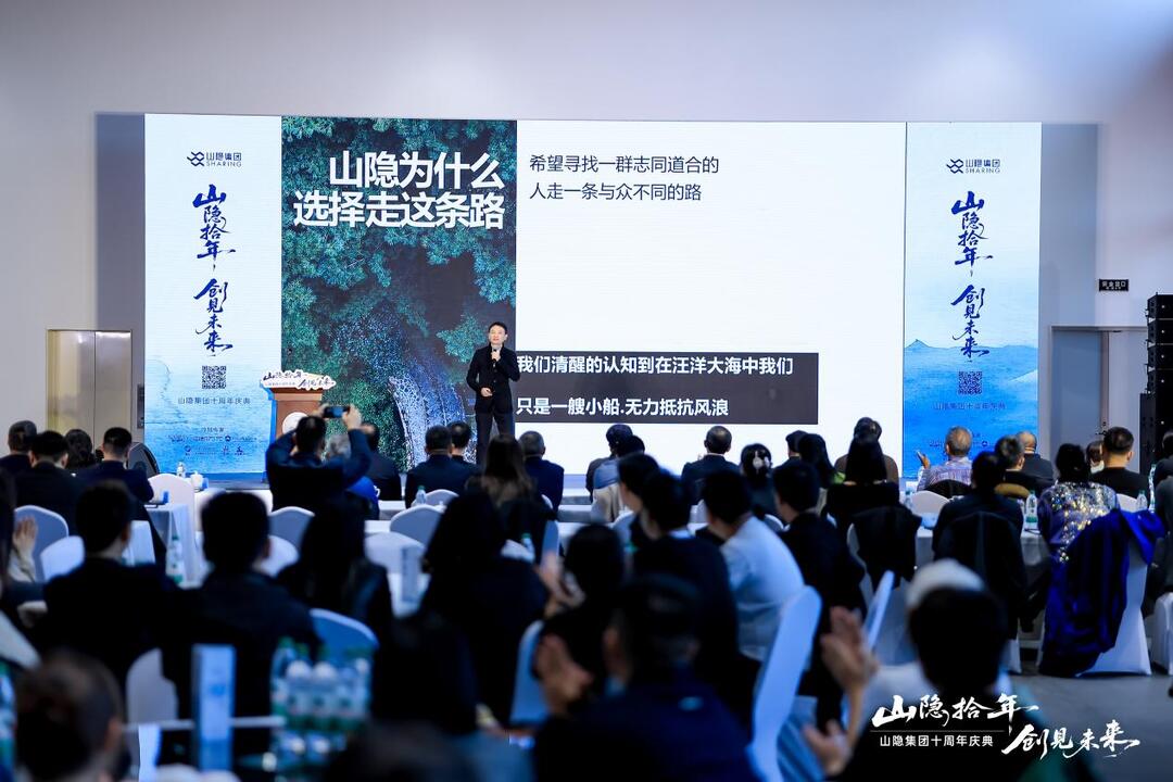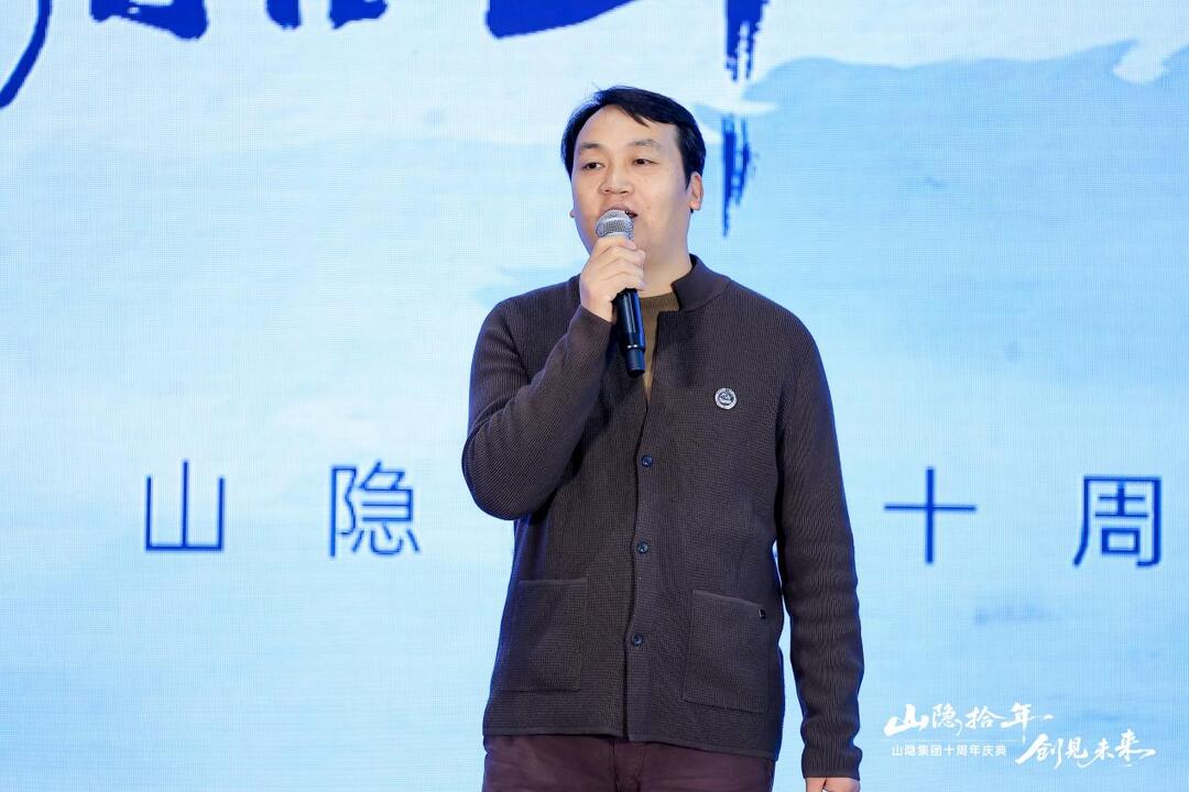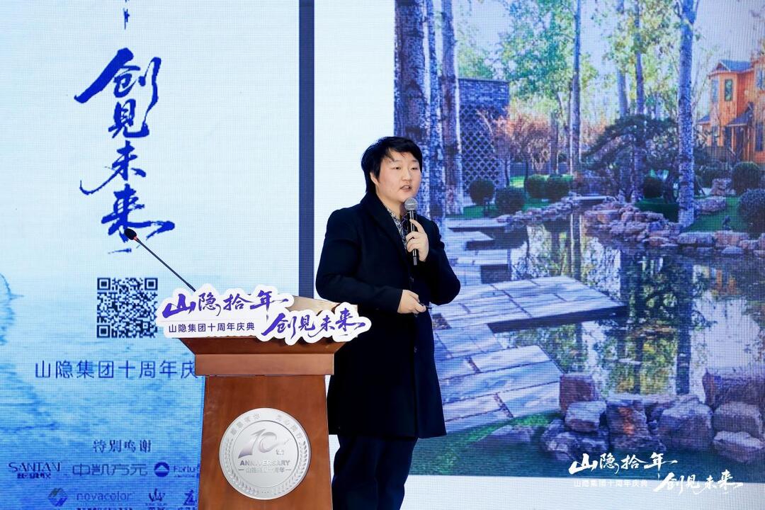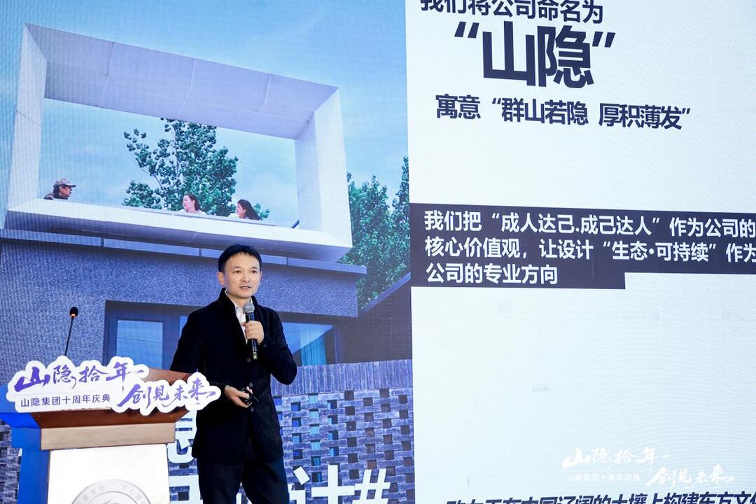 山隐集团董事长郭明向在座的嘉宾讲述了山隐成立的初衷以及山隐十年来历经的风雨征程,从成立之初的小树苗历经风雨磨难,克服重重困难,成长为枝繁叶茂的大森林。十年来,山隐集团始终把“成人达己,成己达人”作为公司的核心价值观,让“设计·生态可持续”作为公司的专业方向,才有了如今的成就。希望未来山隐集团能够不忘初心,再创佳绩。