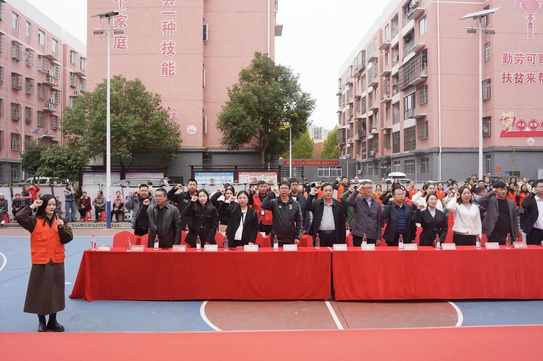 安全知识护平安,筑牢群众安全防线。启动仪式后,志愿服务周系列活动随即展开。县公安局、县民政局等单位的志愿者通过展板展示、资料发放等形式,向居民普及防诈骗、禁毒、防性侵、未成年人保护等知识。生动的案例讲解、实用的防范技巧,让居民们增强了安全意识和自我保护能力。“这些知识太实用了,特别是防诈骗的内容,正好可以讲给家里的老人听。”社区居民王阿姨拿着宣传资料说道。志愿者们耐心解答居民疑问,用通俗易懂的语言将安全知识送到群众身边。